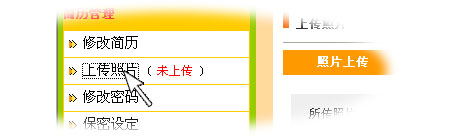 | 注冊成功后系統(tǒng)會自動跳轉到個人管理頁面,點擊“上傳照片”,上傳不大于100KB的照片,這樣更容易讓招聘企業(yè)青睞; |